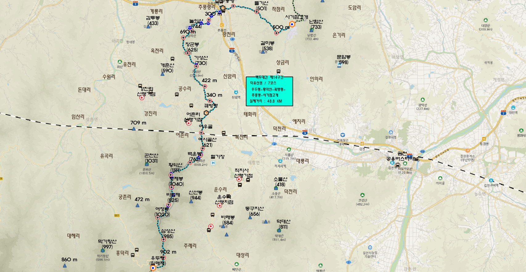 백두대간 제 14 구간 : 덕유산권 / 7 코스: 우두령(질매재)~바람재~황악산~궤방령~눌의산~추풍령~사기점고개