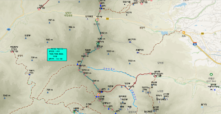 백두대간 제 43 구간 : 설악산권 / 3 코스: 한계령~대청봉~회운각산장~공룡능선~마등령